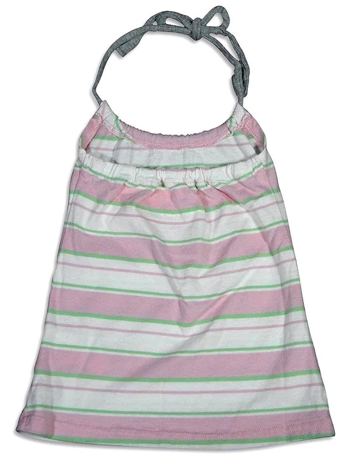 Dinky Souvenir - Infant Girls Stripe Halter Top, Pink, Green, Tie Behind Neck, Stripe Bodice, Patch Pockets, Elastic Across Back, 100% Cotton, #25646