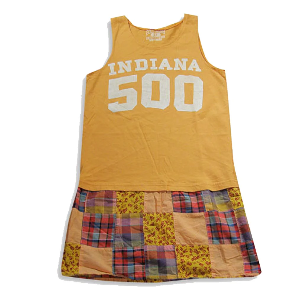 Gold Rush - Girls Tank Dress, Orange, Multi, Knit Bodice, INDIANA 500 Screen Print, Patchwork Skirt, 100% Cotton, #17239