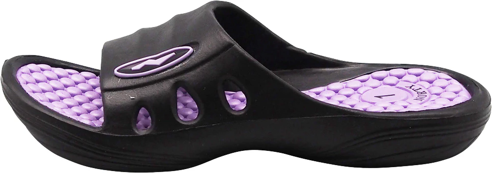 Norty - Girl's Slide Strap Shower Sandal, Perfect sandal to jump in the shower or head to the beach or pool, Molded upper, Adjustable fabric closure strap, Cushioned massage footbed, Non-skid sole, Man Made Materials, Made in China, #40333