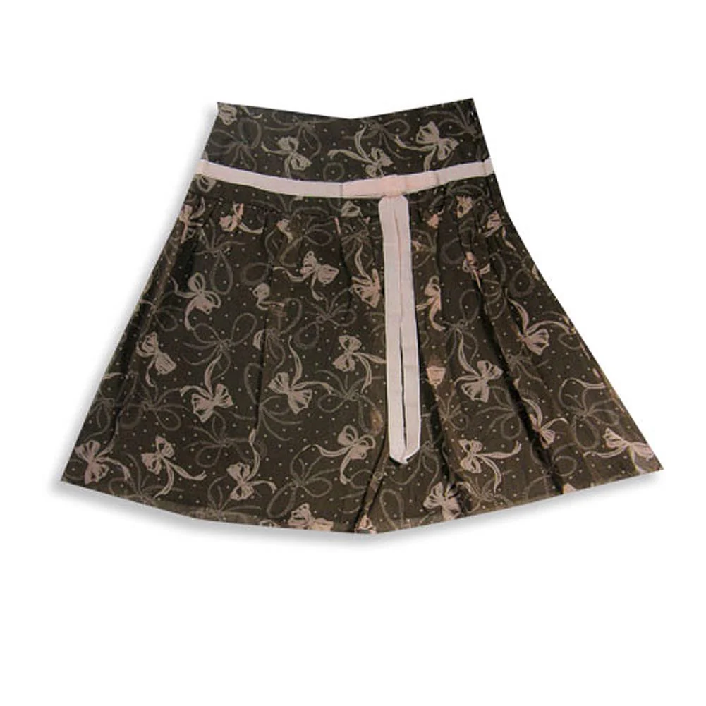 Pirouette - Girls Silk Bow Skirt, Brown, Pink, Drop Waistband, Side Zipper, Velvet Ribbon And Bow, Fully Lined, 100% Silk Lining 100% Acetate, Made In USA, #13925