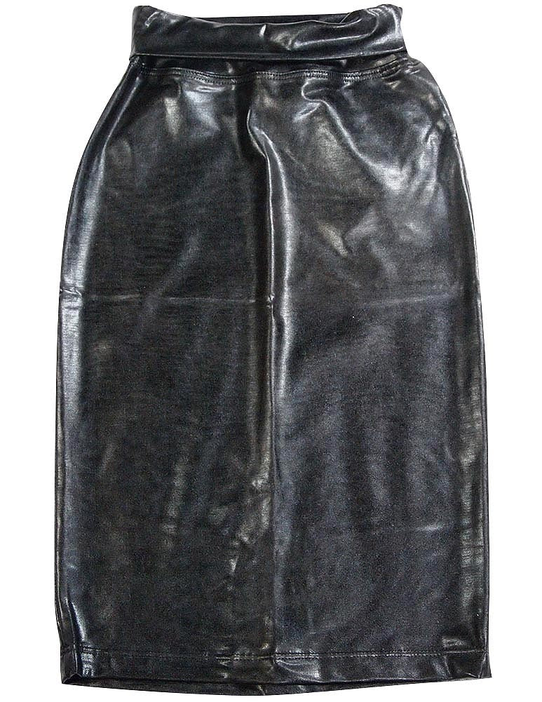 So Nikki - Big Girls Tube Skirt, Black, Faux Leather Look, Rollover Waistband, Snug Fitting, Size Small Approximately 18 inches from Waist to Hem, 80% Nylon 20% Spandex, Made in USA, #36106 36-106