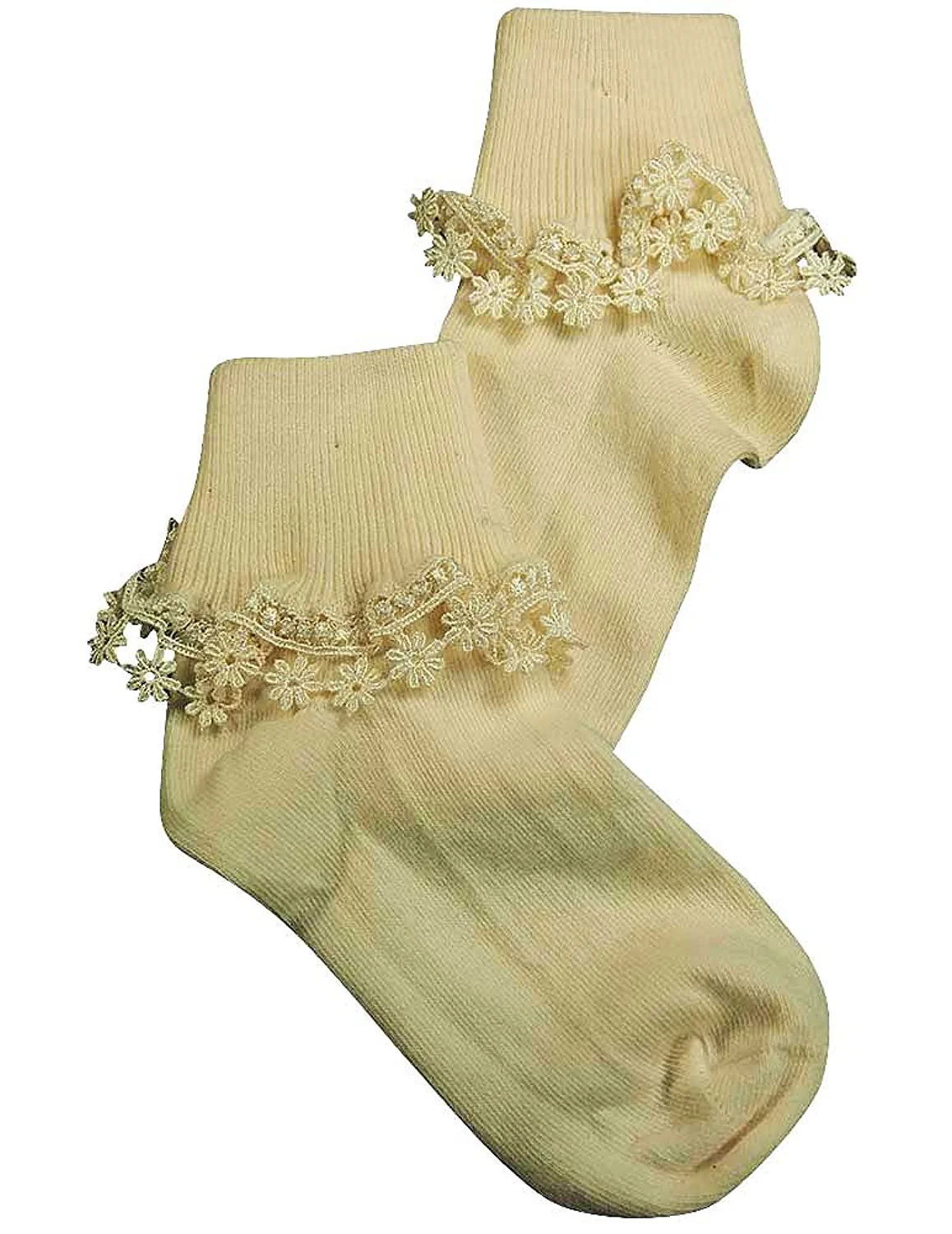 Tic Tac Toe - Big Girls Dangling Daisy Cuff Sock, Ivory, Ribbed Cuff, Dangling Daisy Trim, Size S = 5-6 1/2 M = 6-7 1/2 L = 7-8 1/2 XL = 8-9 1/2, 80% Cotton 18% Nylon 2% Lycra, Made in Philippines, #37053 37-053