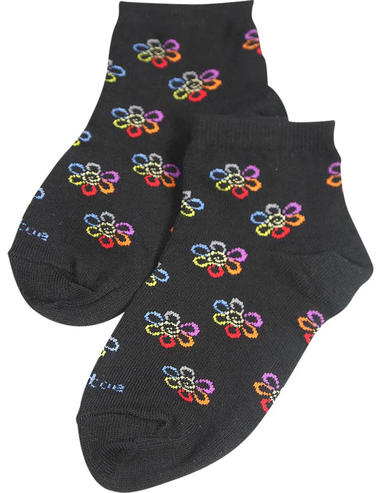 Tic Tac Toe - Girls Ankle Sock, Black, Multi Colored Flowers, Non Slip Sole, Size L = 7 - 8 1/2 XL = 8 - 9 1/2 XXL = 9-11, 75% Cotton 17% Nylon 8% Spandex, Made in Korea, #31834 31-834