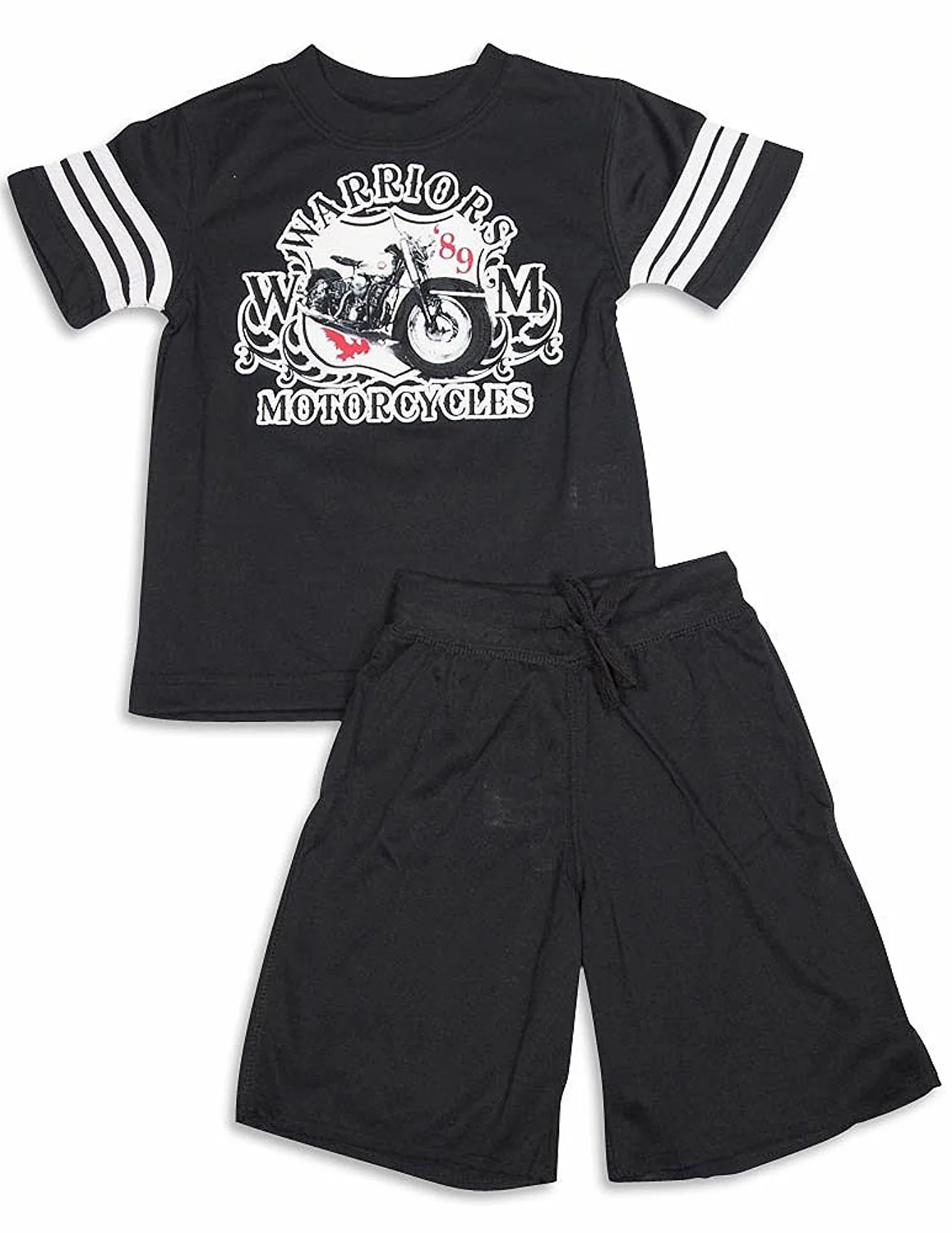 Wes and Willy - Boys Short Sleeve Shortie Pajamas, White, Red, Short Sleeve Top, Ribbed Neck, Pirate Skull Graphic, Full Elastic Wide Ribbed Waistband Short With Drawstring Tie, Cut Hem, Flame Resistant, 100% Polyester, Made In China, #29135 29-135